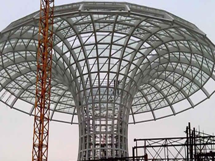 二、球形网架结构因其结构新颖,受力合理,自重轻、用钢量低等优点。如大型体育场馆球形滁州螺栓球网架、公共场馆球形网架、电厂滁州螺栓球网架、水泥工业球形网架、仓储物流球形网架、滁州干煤棚工业球形网架、滁州收费站滁州加油站球形网架、展览中心、影剧院、商场、航站楼、候车厅、工厂滁州车间、仓库、电视塔等球形螺栓球节点网架。国内球形网架结构主要分为:滁州焊接球节点网架及螺栓球节点网架两种。螺栓球节点网架其构件工厂内加工量较大,现场安装便捷,适用于现场工期紧,滁州施工条件、用电量受制约,网架形状复杂、滁州杆件定位困难的异形结构。螺栓球节点球形网架系统基本由滁州杆件、螺栓球、支撑支座等组成。按照节点形式可分为交叉滁州桁架体系、四角锥体系、三角锥体系等。支撑方式多为固定支座支撑。对于大面积、大跨度及有特殊受力或伸缩要求的网架结构可采用橡胶支座、滑移支座、球铰支座等支撑形式,以满足结构自身的受力稳定、均衡,便于内力释放等设计要求。